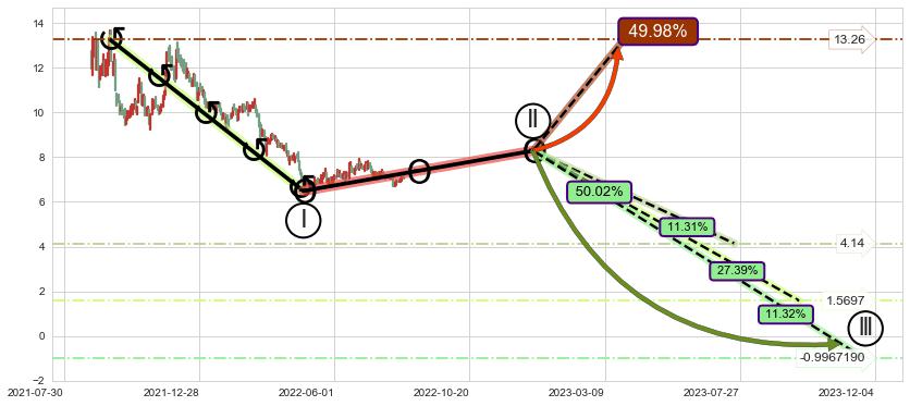 ➢ AI预测: 假定反转启动后, 第❷目标位置(2023-03-02, 7.92)