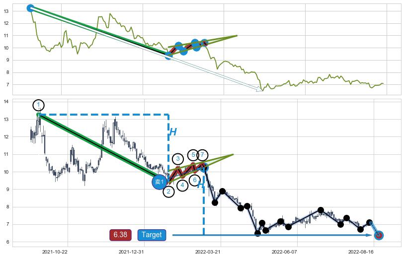 ➣ AI预测: 假定反转启动后, 第❶目标位置(2023-02-16, 8.81)