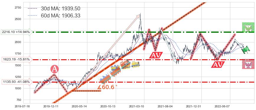 ♘ 阻力价格位2216.10,可信任强度73.20%,距离最后交易2022-08-12形成的收盘价格1928.00相差 +14.94%