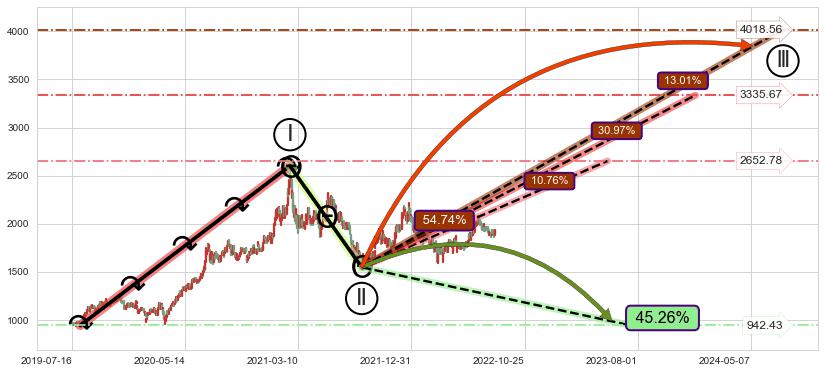 ♘ 支撑价格位1623.19,可信任强度69.09%,距离最后交易2022-08-12形成的收盘价格1928.00相差 -15.81%