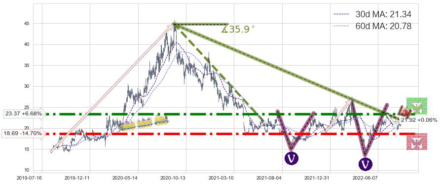 ♘ 阻力价格位23.37,可信任强度86.39%,距离最后交易2022-08-12形成的收盘价格21.91相差 +6.68%