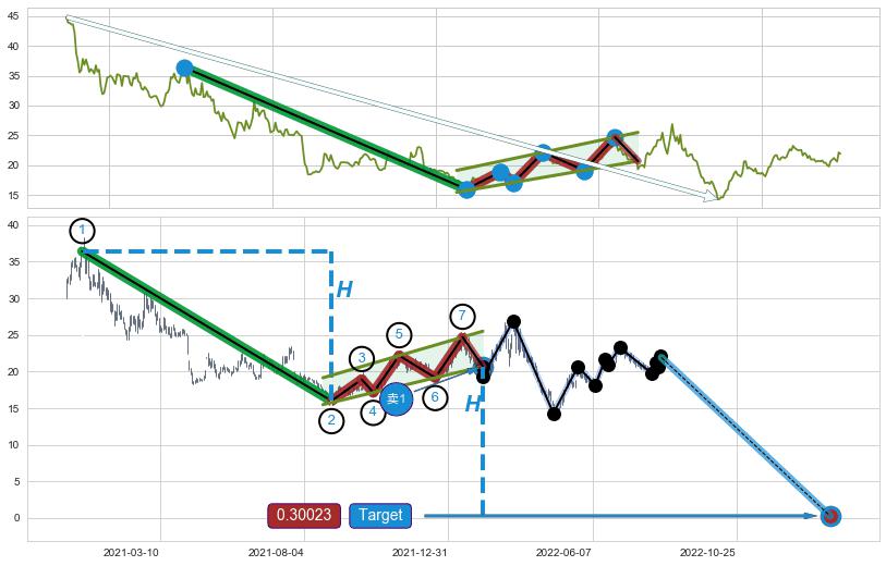 ➣ 最小中继整理跌幅→𝐇: 20.40 (𝐇旗杆的长度:旗杆起点→顶点)