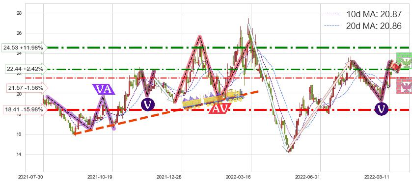 ♘ 阻力价格位22.44,可信任强度66.36%,距离最后交易2022-08-12形成的收盘价格21.91相差 +2.42%