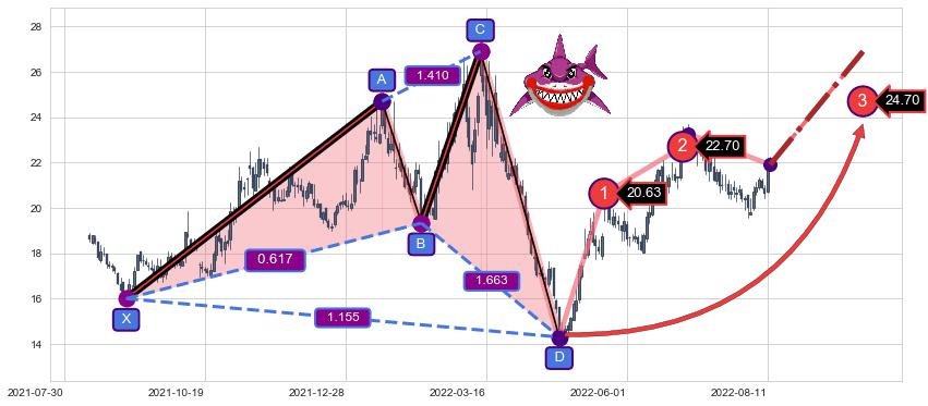 ➣ 已完成【鲨鱼】形态起点X: 2021-08-31, 终点D: 2022-04-25, 共155交易日