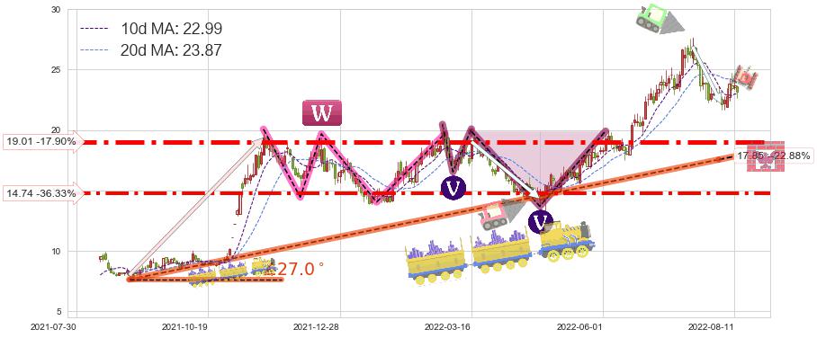 ♘ 支撑价格位19.01,可信任强度87.71%,距离最后交易2022-08-12形成的收盘价格23.15相差 -17.90%