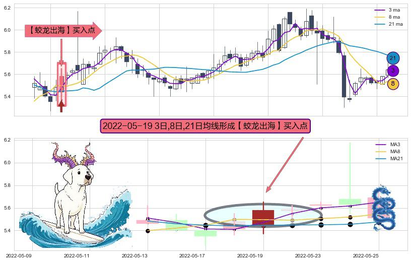 ⚀ 2022-05-19日显现 3日-8日-21日均线 【蛟龙出海】买入点 看多信号,后市看涨,买入