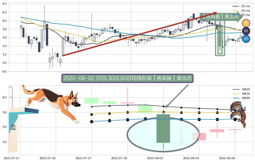 ⚀ 2022-08-02日显现 20日-30日-60日均线 【绝命跳】卖出点 看空信号,后市看跌,卖出