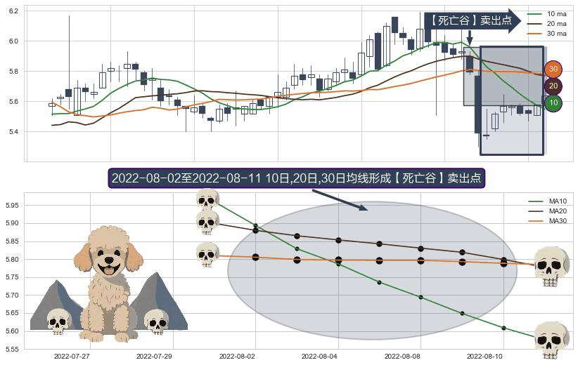 ⚀ 2022-08-03-日至2022-08-11-日显现 10日-20日-30日均线 【死亡谷】卖出点 看空信号,后市看跌,卖出