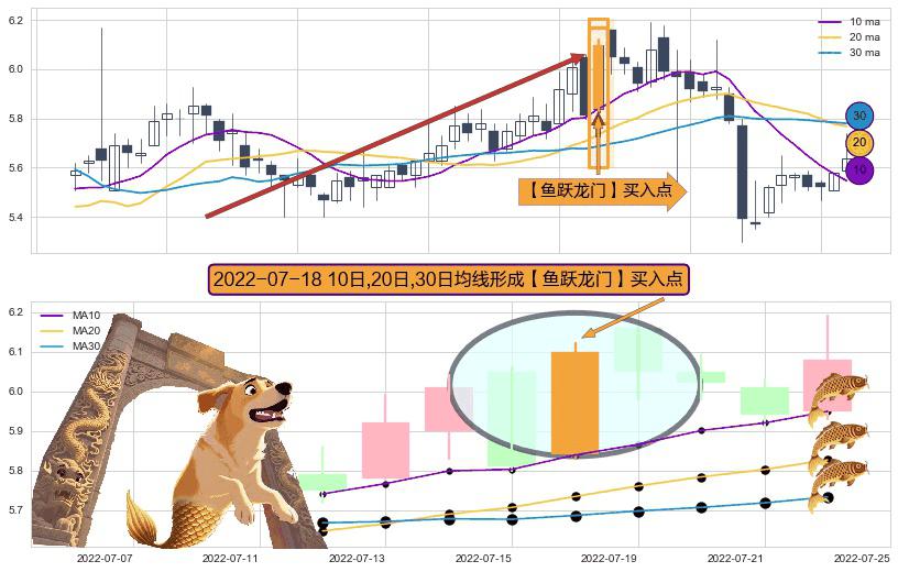 ⚀ 2022-07-18日显现 10日-20日-30日均线 【鱼跃龙门】买入点 看多信号,后市看涨,买入