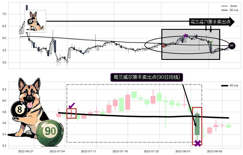 ⚀ 2022-08-02-日显现 葛兰威尔均线 90日均线 第⑧卖出点 下降趋势的中继信号,后市看跌,卖出信号