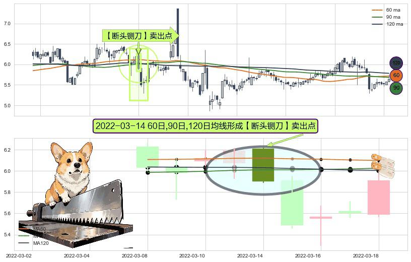 ⚀ 2022-03-14日显现 60日-90日-120日均线 【断头铡刀】卖出点 看空信号,后市看跌,卖出