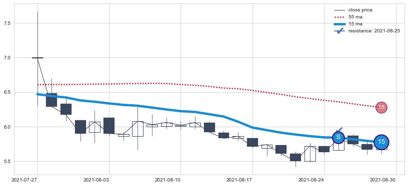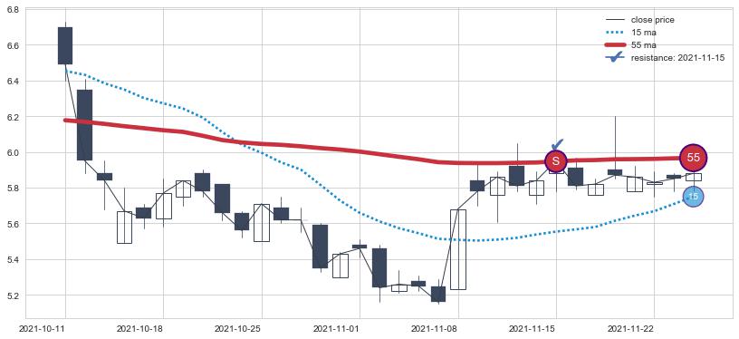 ⚂ 2022-07-05-日均线向上突破,2022-08-02-日重新下穿均线破位,均线阻力再次生效
