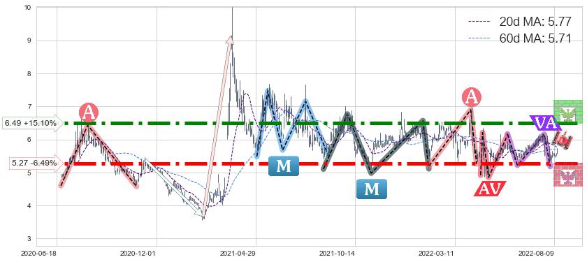 ♘ 阻力价格位6.49,可信任强度95.87%,距离最后交易2022-08-12形成的收盘价格5.64相差 +15.10%