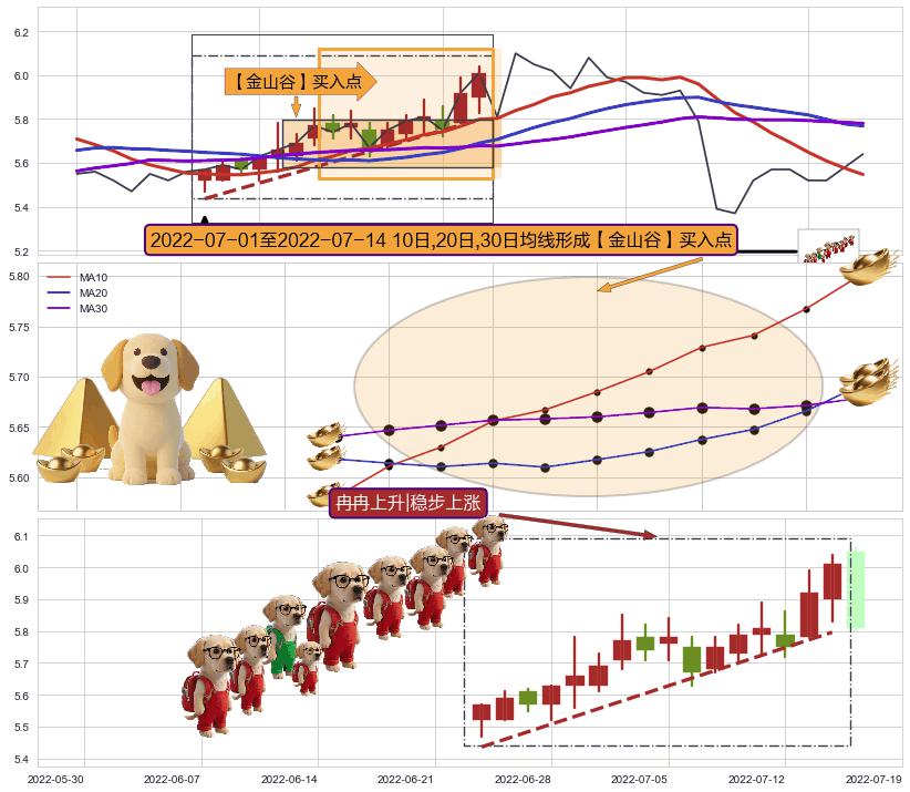 | 2 🅚:上涨孤独十字星 ➕ 🎢:【金银山谷】买入点均线组合买入点信号形成后,猜想后续突破上升,沿着向上的尖头三角上涨 ☞ 看多信号 ⇥ 【均线】交织【🅚线】⇥ 综合量化分数: 54 | > |