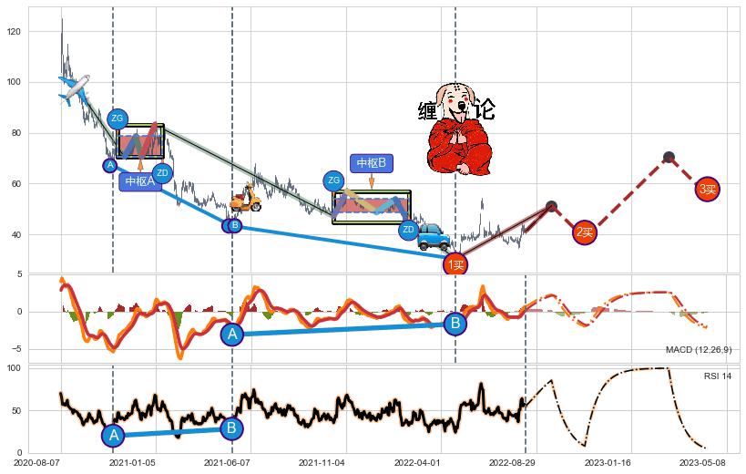 | 6 🅚:【高山滑雪】买入点 ➕ 🌊:波浪理论猜想下跌浪5已形成,猜想后续形成abc反弹上涨(均值回复) ☞ 看多信号 ⇥ 【均线】交织【图形】⇥ 综合量化分数: 51 | > |