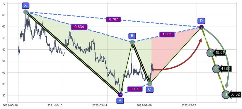 ➣ D点拟合预测价格59.76,距离最后交易收盘价格41.20相差 +45.04%