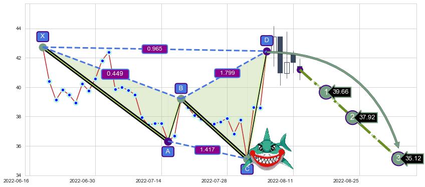➣ 已完成【鲨鱼】形态起点X: 2022-06-20, 终点D: 2022-08-05, 共35交易日