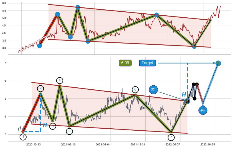 ➣ 最小中继整理涨幅→𝐇: 2.130 (𝐇旗杆的长度:旗杆起点→顶点)