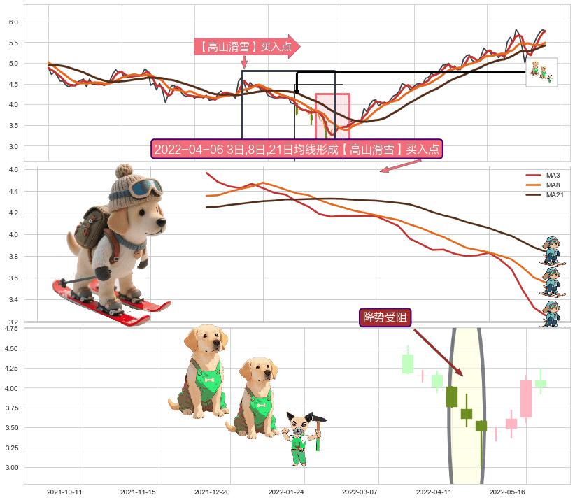 | 5 🅚:下探上涨 ➕ 🎢:【鱼跃龙门】买入点均线组合买入点信号形成后,猜想后续充分蓄势之后,上涨突破关键阻力位 ☞ 看多信号 ⇥ 【均线】交织【🅚线】⇥ 综合量化分数: 51 | > |