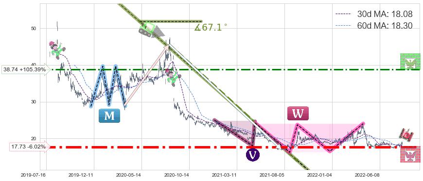 ♘ 阻力价格位38.74,可信任强度69.54%,距离最后交易2022-08-12形成的收盘价格18.86相差 +105.39%