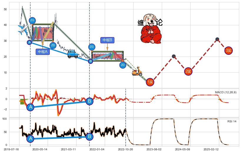 | 15 🅚:下跌两颗星 | 下跌三颗星 ➕ ☯️:缠论中枢点下降缠中枢B破位后距离1买距离较远,随后猜想后续持续下跌(趋势跟踪) ☞ 看空信号 ⇥ 【🅚线】交织【图形】⇥ 综合量化分数: 49 | > |