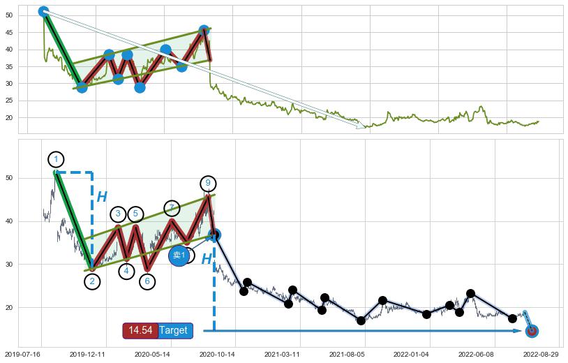 ➣ 最小中继整理跌幅→𝐇: 22.29 (𝐇旗杆的长度:旗杆起点→顶点)