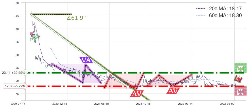 ♘ 阻力价格位23.11,可信任强度90.88%,距离最后交易2022-08-12形成的收盘价格18.86相差 +22.55%