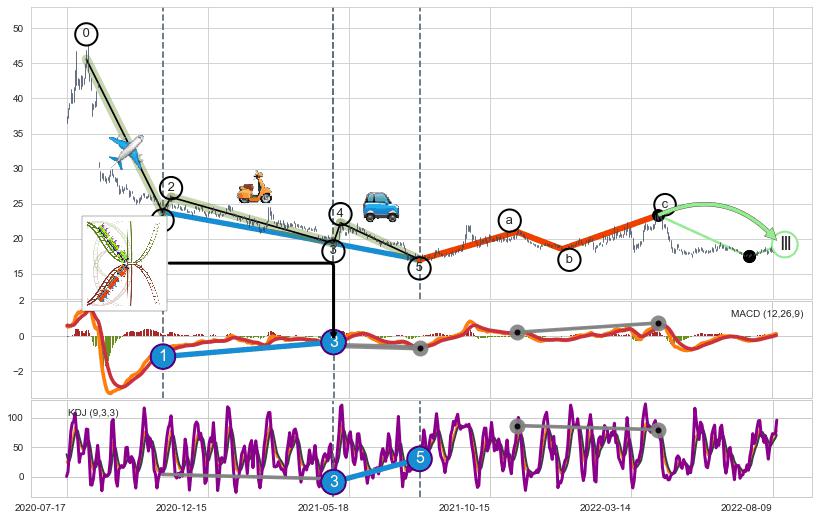 ➣ a,c调整浪MACD, RSI, KDJ走势都【未出现】背离,abc走势延续, 5浪反转概率增强