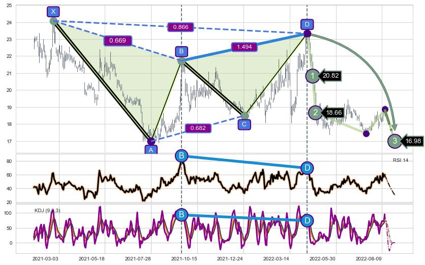 ➣ 已完成【伽利】形态起点X: 2021-02-23, 终点D: 2022-04-12, 共276交易日