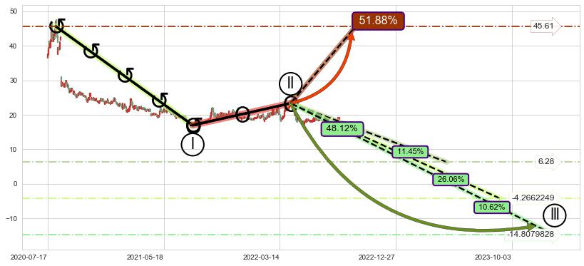 ➣ 大趋势循环浪继续向下概率48.12%