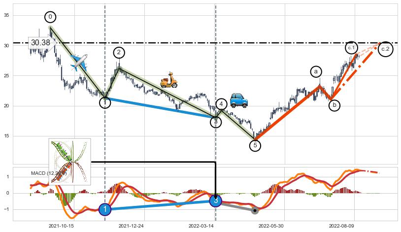 ➣ c.1: 当前c浪回调位置(2022-08-10, 28.53),仍然有回调空间