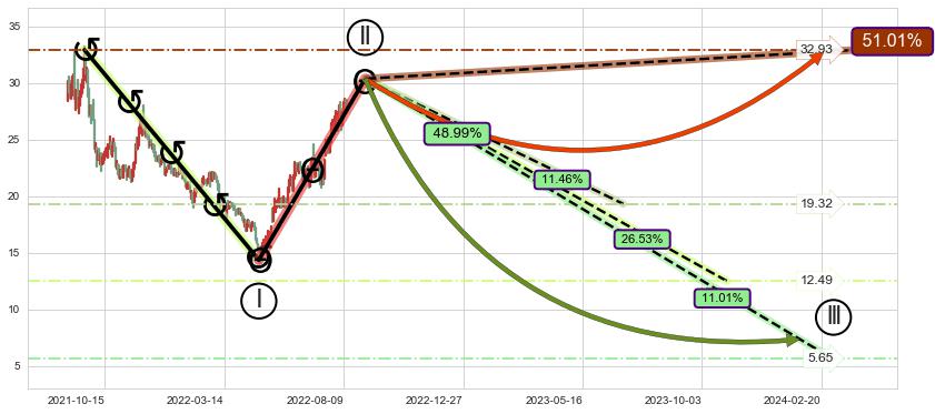 ➢ AI预测: 假定反转继续,第❸价格目标位置(2022-10-10, 32.93)