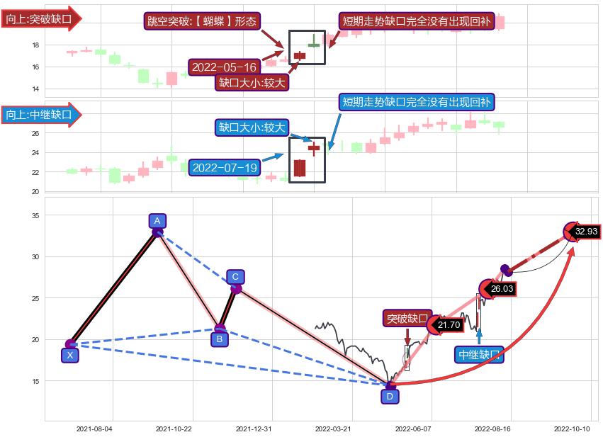 ➢ 【蝴蝶】形态 🔜 中继缺口 🔜 突破缺口 综合量化分数:58.37 【偏多】