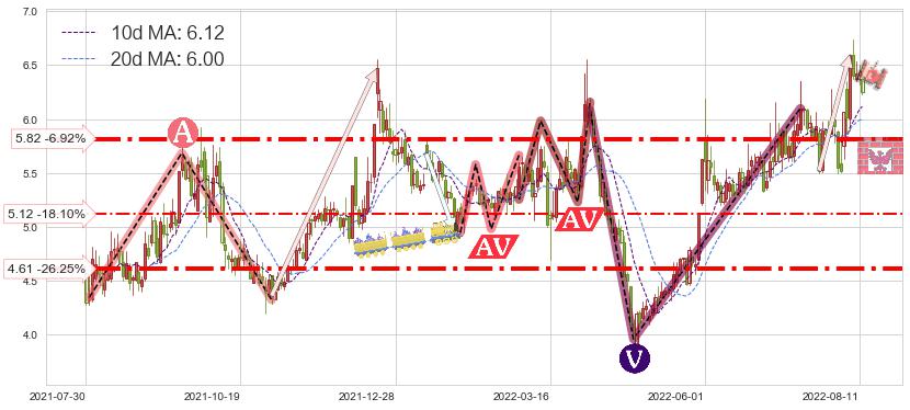 ➢ 2022-08-08到达第❸价格目标位置6.60