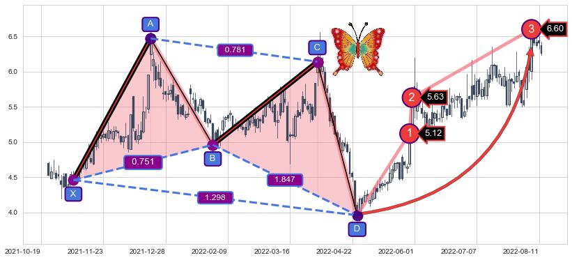 ➣ 已完成【蝴蝶】形态起点X: 2021-11-05, 终点D: 2022-04-26, 共115交易日