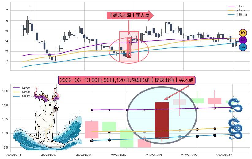 形态多维评估: ⚀ 2022-06-13日显现 60日-90日-120日均线 【蛟龙出海】买入点 看多信号,后市看涨,买入