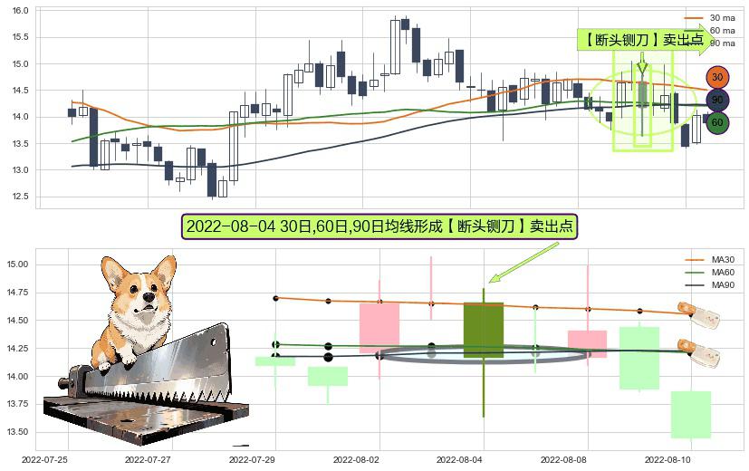 形态多维评估: ⚀ 2022-08-04日显现 30日-60日-90日均线 【断头铡刀】卖出点 看空信号,后市看跌,卖出