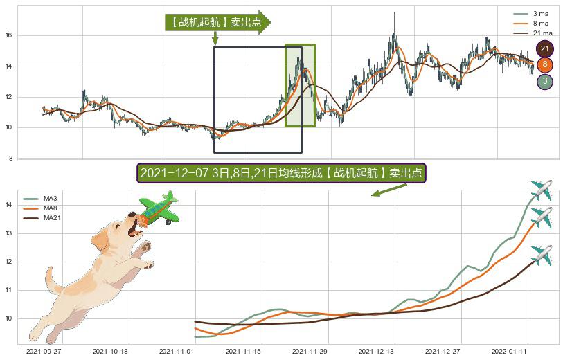 形态多维评估: ⚀ 2021-11-01日-2022-01-12日显现 3日-8日-21日均线 【战机起航】卖出点 看空信号,后市看跌,卖出