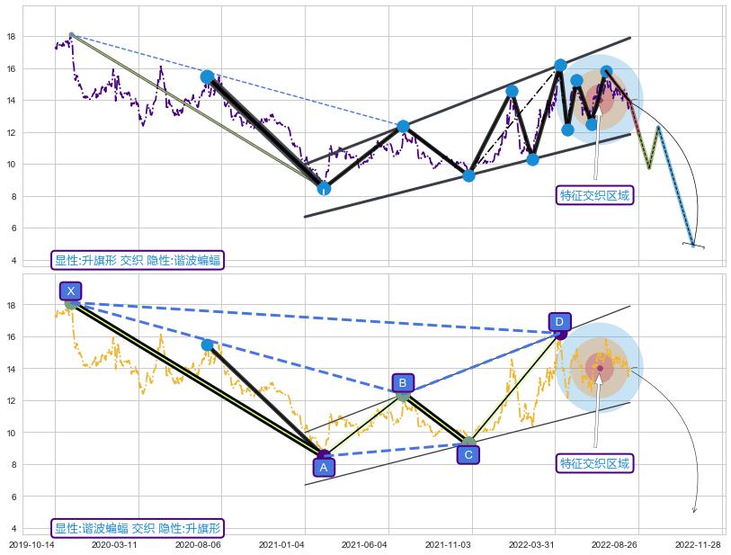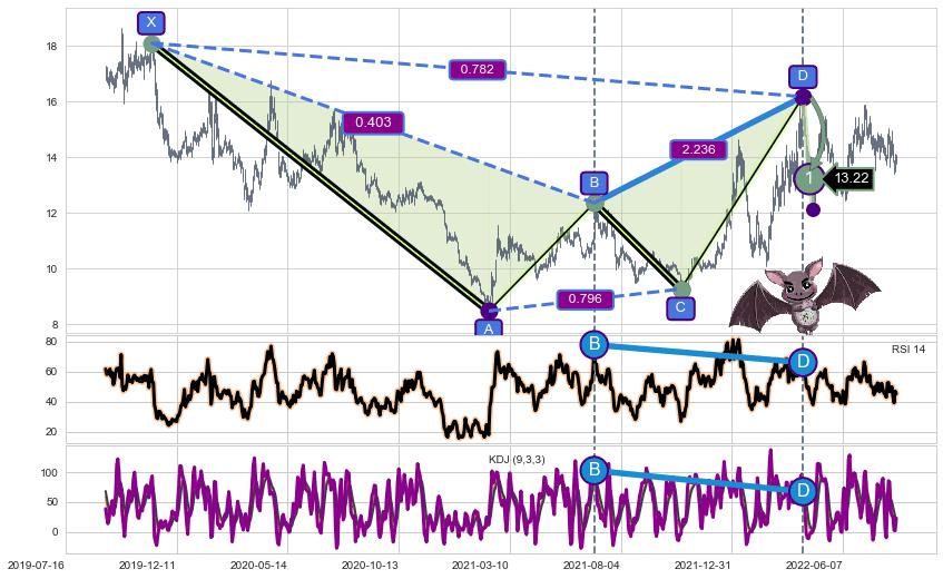 ➣ 已完成【蝙蝠】形态起点X: 2019-11-08, 终点D: 2022-04-12, 共588交易日