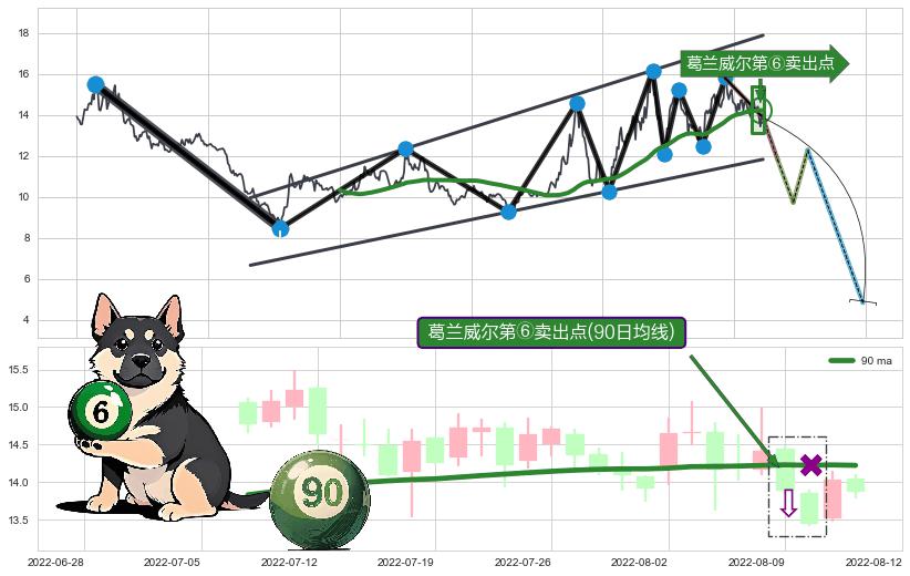 ♘ 阻力价格位15.84,可信任强度96.18%,距离最后交易2022-08-12形成的收盘价格13.87相差 +14.19%