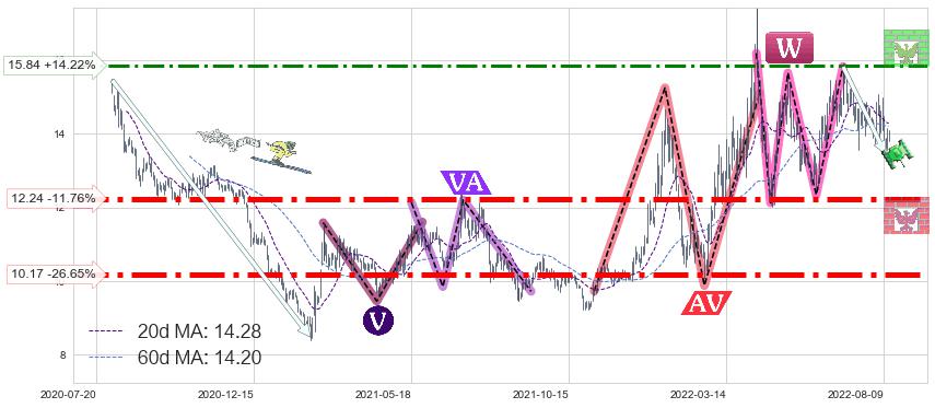 ♘ 阻力价格位15.84,可信任强度61.19%,距离最后交易2022-08-12形成的收盘价格13.87相差 +14.22%