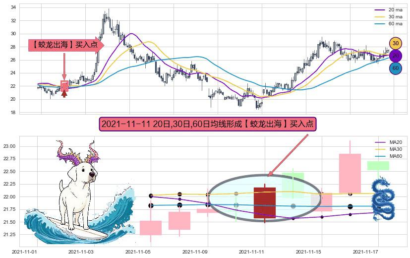 ⚀ 2021-11-11日显现 20日-30日-60日均线 【蛟龙出海】买入点 看多信号,后市看涨,买入