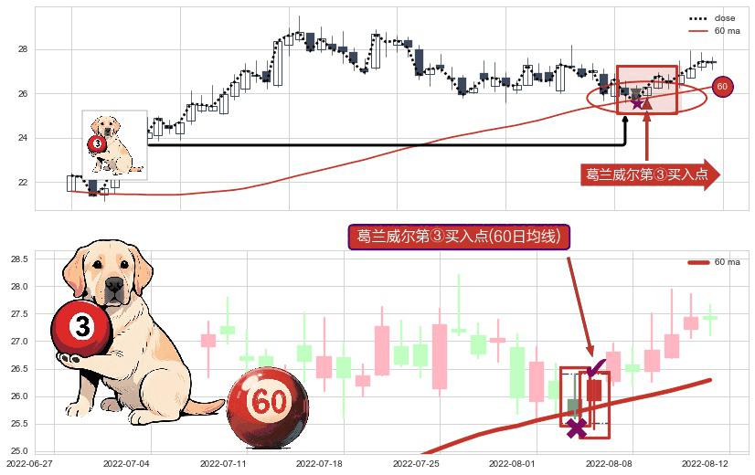 ⚀ 2022-08-04-日显现 葛兰威尔均线 60日均线 第③买入点 上升趋势的中继信号,后市看涨,买进信号