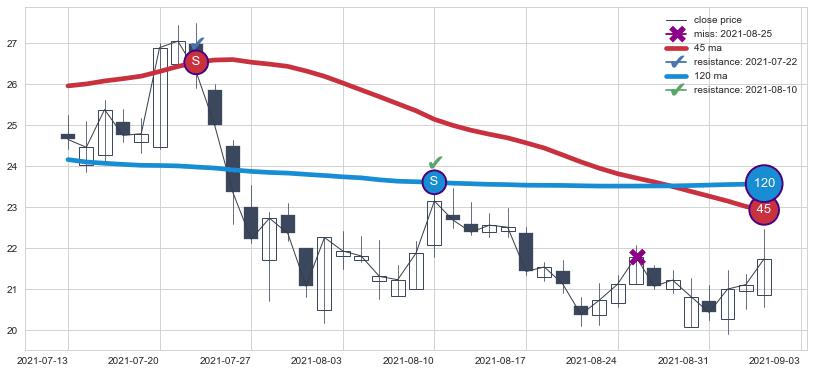 ⚁ MA3和MA8走势平行,且始终保持在短距离内,MA21始终在短中期均线下方,与短中期均线保持一定的距离,微微上行