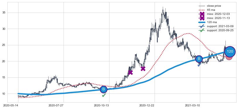 ⚃ 中期均线MA90上穿长期均线MA120形成的交叉是标准 黄金交叉