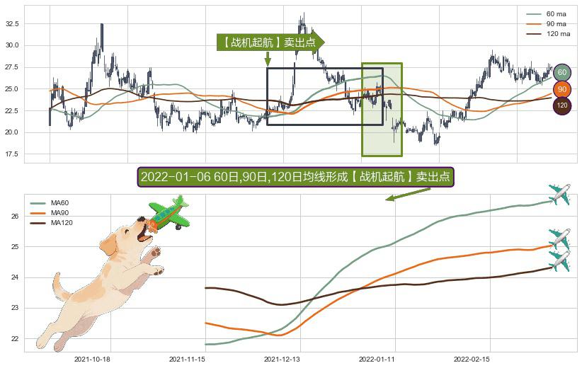 ⚀ 2021-11-15日-2022-03-04日显现 60日-90日-120日均线 【战机起航】卖出点 看空信号,后市看跌,卖出
