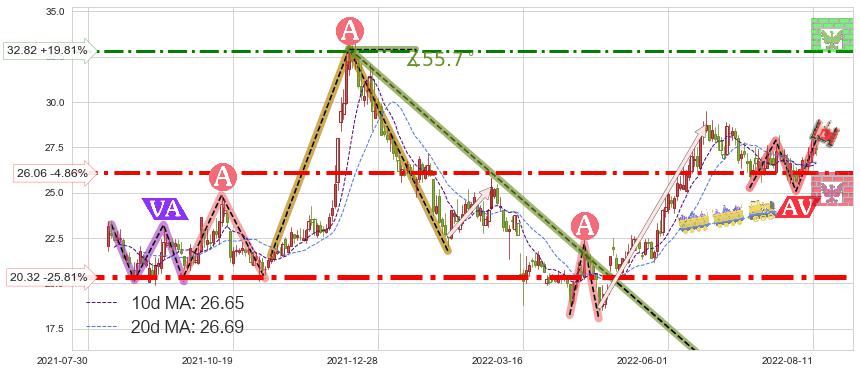 ➢ 2022-08-09到达第❶价格目标位置26.85