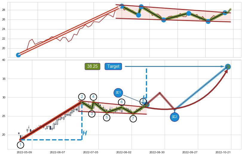 ➣ 最小中继整理涨幅→𝐇: 10.14 (𝐇旗杆的长度:旗杆起点→顶点)