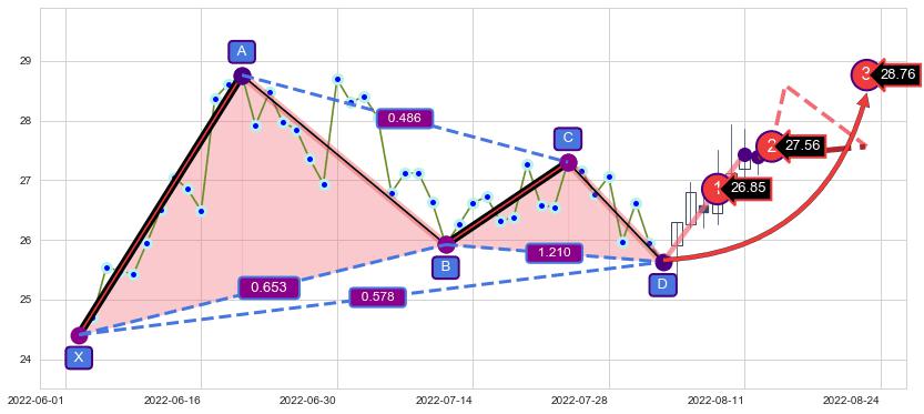 ➣ AI预测: 假定反转启动后, 第❶目标位置(2022-08-29, 26.97)