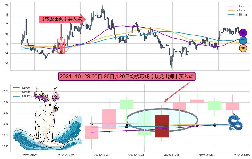 形态多维评估: ⚀ 2021-10-29日显现 60日-90日-120日均线 【蛟龙出海】买入点 看多信号,后市看涨,买入